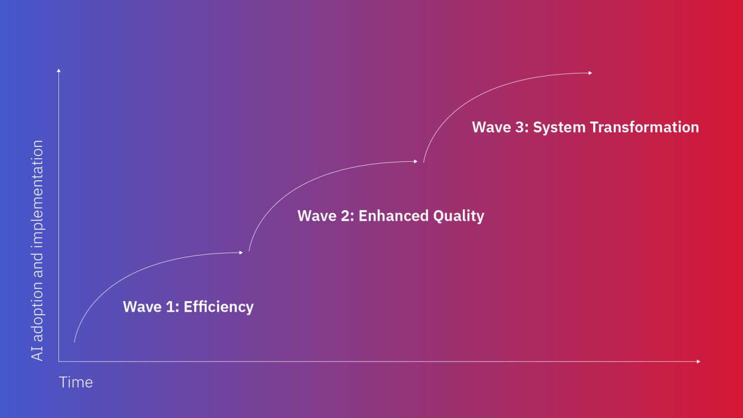 Change doesn’t happen overnight. One framework (that we like) to understand how organizations progress with AI adoption is the BOI three-wave model.